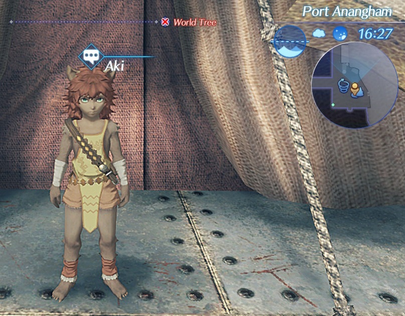 Aki is an NPC in 异度神剑 2. He is a Gormotti boy who can be found at Port Anangham in the Empire of Mor Ardain after leaving Indol. He is friends with Bonono.