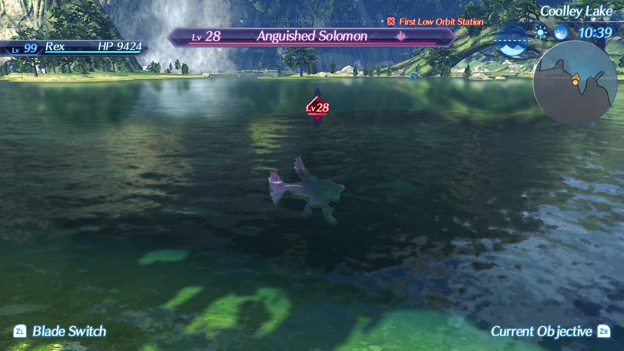 Anguished Solomon is a Unique Monster in 异度神剑 2. He is a member of the Piranhax family and can be found at level 28 at the south end of Coolley Lake in Gormott Province when it is raining.