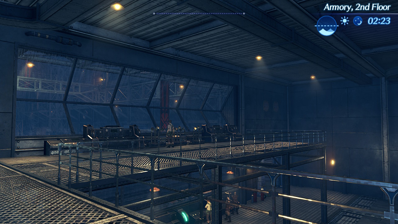 Armory, 2nd Floor is a location in 异度神剑 2. It is located in the Titan Battleship area of the Gormott Province, directly above the Armory and accessible form the 停机库 Passage.