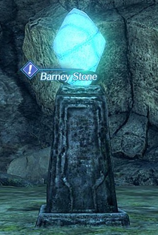 Barney Stones are objects in Torna ~ The Golden Country. They are a set of four glowing blue crystals set on low pillars in caves around the Kingdom of Torna, rumored to have been set up by an ancient 冒险者 named Barney and first encountered during Barmy Tale of Barney.