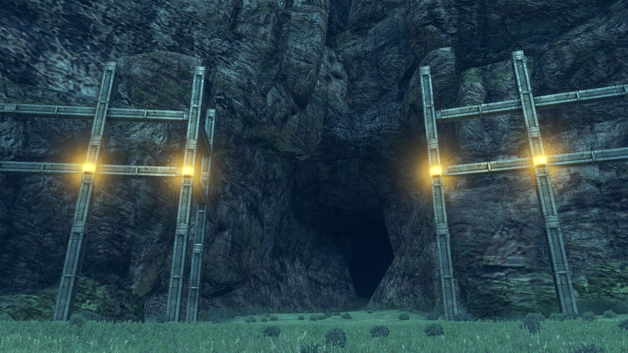 Bask Cave Passage (Japanese: バグス岩窟通り, Bagusu Gankutsu-dōri) is a landmark in 异度神剑. It is located on the upper level of Bionis' Leg. It is a cave passage located south of Kasharpa Falls, which leads to Colony 6. It is accessed by crossing some bridges over the water around Kasharpa Falls, where the party can swim.
