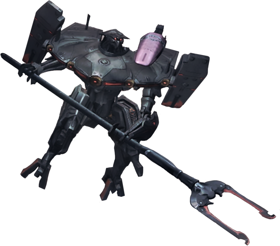"Wrothian Doll tasked with supporting commander units such as the 婆裟罗战甲. While the high-caliber 光束 cannons in their core are the Caladars' defining trait, they also possess simple transformative capabilities that allow them to assume 类人型 form during hand-to-hand engagements. Their specialty, however, is ranged combat while in cruise mode. While in this mode, it's possible for the 婆裟罗战甲 to climb on top of them in order to move about more quickly.