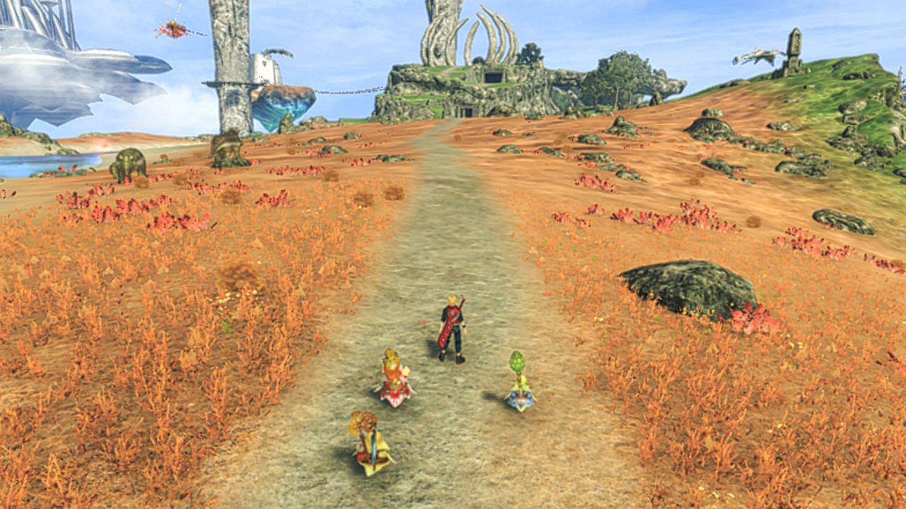 The Cinnabar Plateau is a location in 异度神剑: Future Connected. It is a bright orange plain located on the Bionis' 肩 just beyond Cragmaw Caverns, before Barouh Ruins Cave. The landmarks Zephyr's Counsel and Barouh Plaza lie to the south and east, and a raised path can be followed east to an outcrop overlooking the Purifying Falls, housing a Pororo's Favourite, several Bunnits, and Quondam Grimbellum, a unique Orluga. Xen's Thoroughfare can be found north of the plateau.