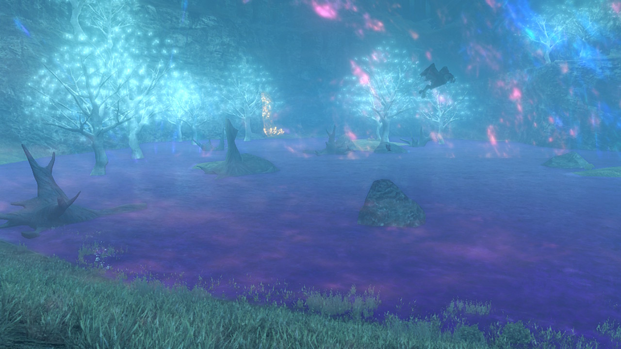 The Dark Swamp is a location in 异度神剑. It is located in Satorl Marsh, west of Exile Fortress. Similar to the Poison Swamp, the purple liquid in the swamp will damage the party, but this can be mitigated by using Terrain Defence gems.