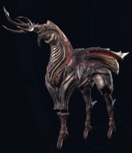 「动击马」戴维 (Japanese: 衝撃馬ダーヴィット, Shōgeki uma Dāvitto) is a 珍稀种 in 异度神剑X. It is a member of the 麒麟马 family. It can be found at level 44 on the cliff above the ruins northwest of 艾美利亚古战场遗迹 in 黑钢大陆. Defeating it is required to complete the eponymous 基础任务 「动击马」戴维.