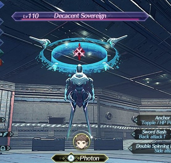 Decacent Sovereigns are Challenge Battle 敌人 in 异度神剑 2. They are Margot-type members of the Sovereign family, and can be found at level 110 during Mk. VIII, a Challenge Battle, available as downloadable content from the Challenge Battle Mode Pack of the Expansion Pass. Only one is fought alongside two Cavalier Sovereigns. It may summon two Wall Sovereigns.