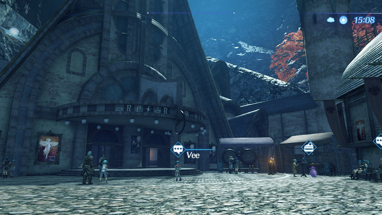 The Entertainment District of Fonsa Myma is a Location in 异度神剑 2. It is located above the 商业区, with more stairs leading up to the Uraya Merc BLADE HOME and Sevind Palace Plaza.