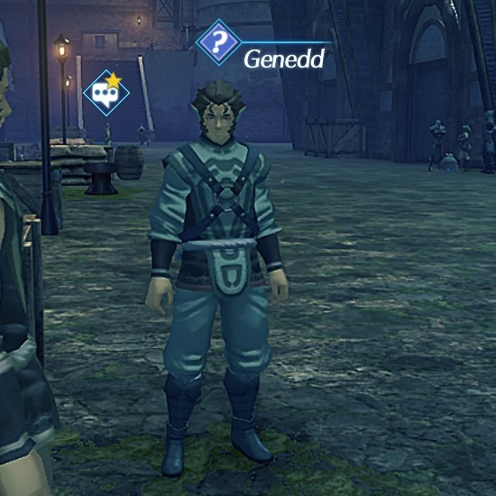 Genedd is an NPC in 异度神剑 2. He is an Urayan who can be found at Fonsa Myma Port in the Kingdom of Uraya, when either Pyra or Mythra is equipped to Rex. The party must speak to him in order to trigger Azami's Quest All's Fair.