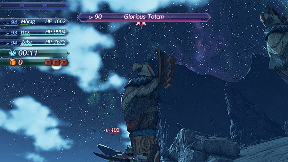 Glorious Totems are 敌人 in 异度神剑 2. They are members of the Tirkin family, and can be found at level 32 - 34 at the Daram Isle in the Leftherian Archipelago. They can be fought at level 90 during a Challenge Battle, available as downloadable content from the Challenge Battle Mode Pack of the Expansion Pass. Four of them must be defeated in order to unlock Obrona's level 2 "Electric Mastery".