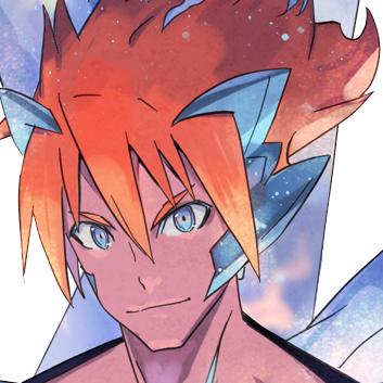 神frey appears a handsome young man with red skin, light-blue eyes, a chiseled face and wild, spiky orange hair. There are ice crystals infused in the sides of his hair and face. He has a tall, well-built figure, further emphasizing his heroic persona. His body is mostly covered in glowing, blue/black ice 防具 with multicolored flame-shaped ice chunks at his back and sides, along with matching black/blue gauntlets. Godfrey's core crystal is in the shape of a blue diamond.