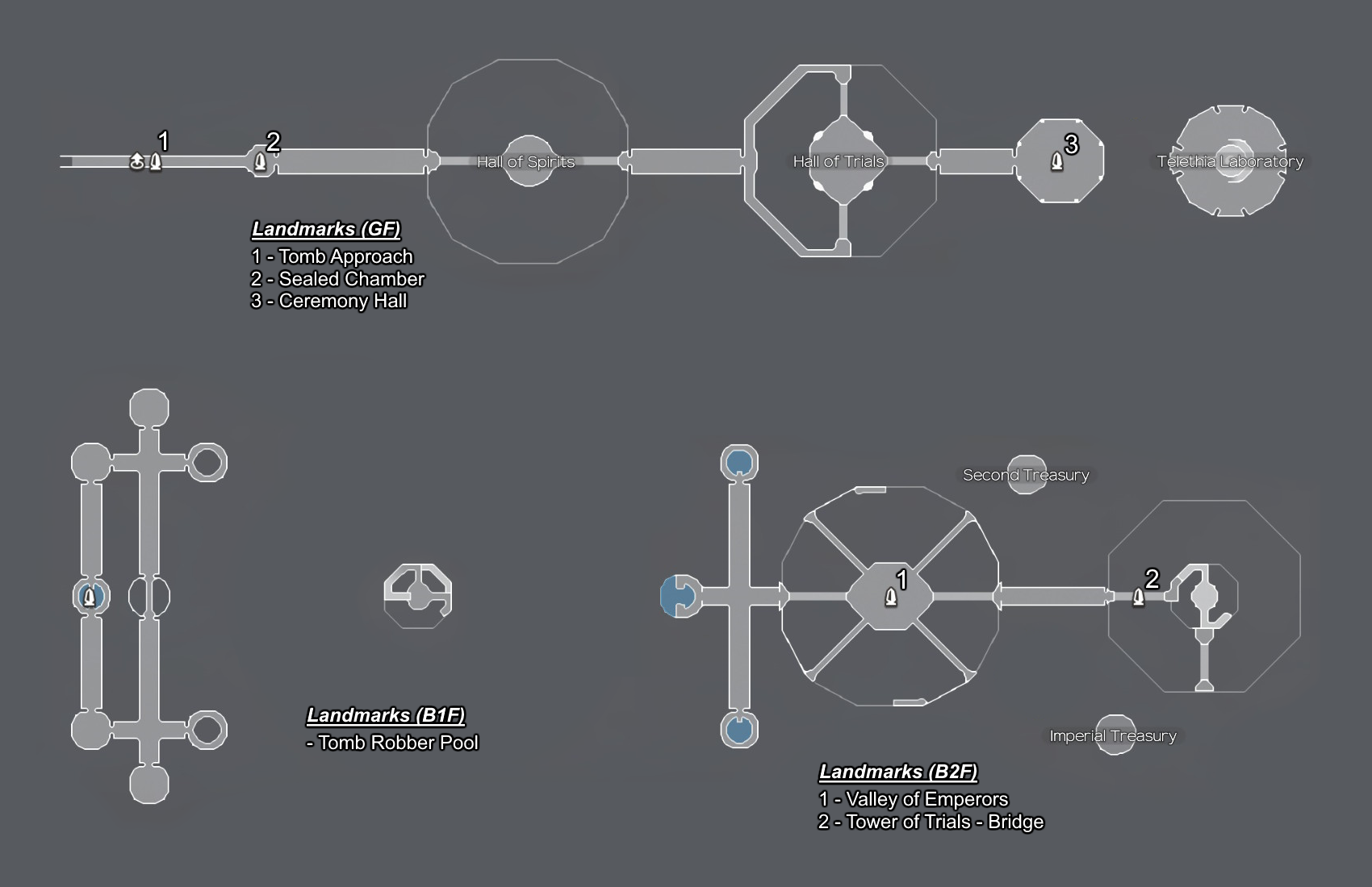 The tomb is where the remains of the emperors of the High Entia reside. It houses a system that provides a test to prove the worthiness of a 潜力 successor, but has not been used for a long time because of the test's dangers. The tomb also houses a secret laboratory which experiments with 特雷西亚 creation, and a couple of treasuries.