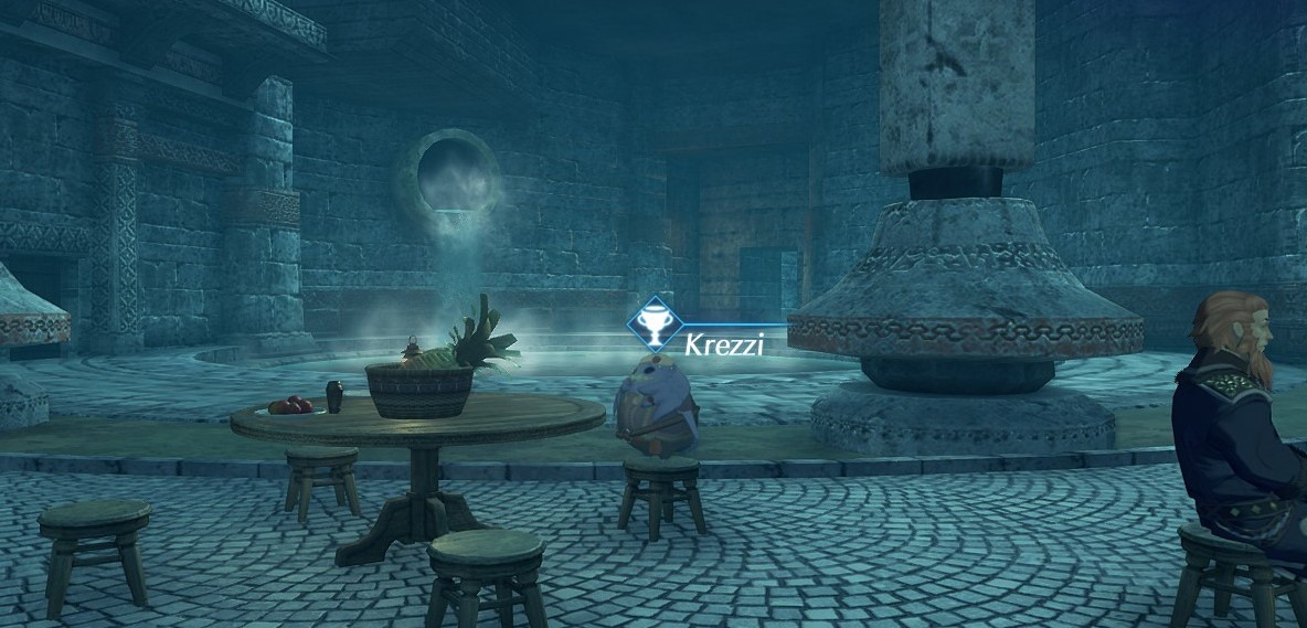 Krezzi Temtem is an NPC in 异度神剑 2. He is a 诺彭 who can be found in the lower area to the east of Theosoir Main Gate in the Kingdom of Tantal. He will offer to trade the Tome of Morytha #1 for items with a total Excitement Quota of at least 100 during Adenine's Books. The Cute Fluffy Ears set must be traded, made up of Gormotti-Ear Headband, Fluffy Snow Bug, and Fire Tarantula. Any 其它 items traded are wasted.