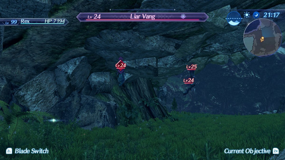 Liar Vangs are 敌人 in 异度神剑 2. They are members of the Vang family and can be found at level 24-26 on the Upper Level - Right area of Gormott Province, particularly near the small pond near Cape Singbreeze.