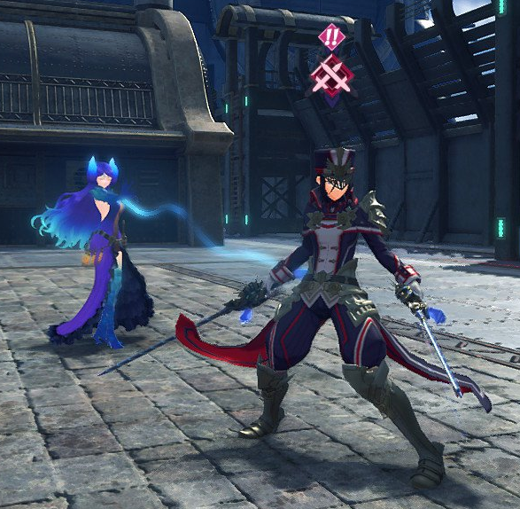 Mòrag is a young woman with long black hair tied in a bun, brown eyes, and fair skin. She has an average build. Mòrag wears a dark blue and white military uniform with white gloves. It has a half-cape and a hat with a gold visor with the Ardainian crest upon it, signalling her position as Special Inquisitor. She wears gold 防具 on her 肩, hips, knees and feet.