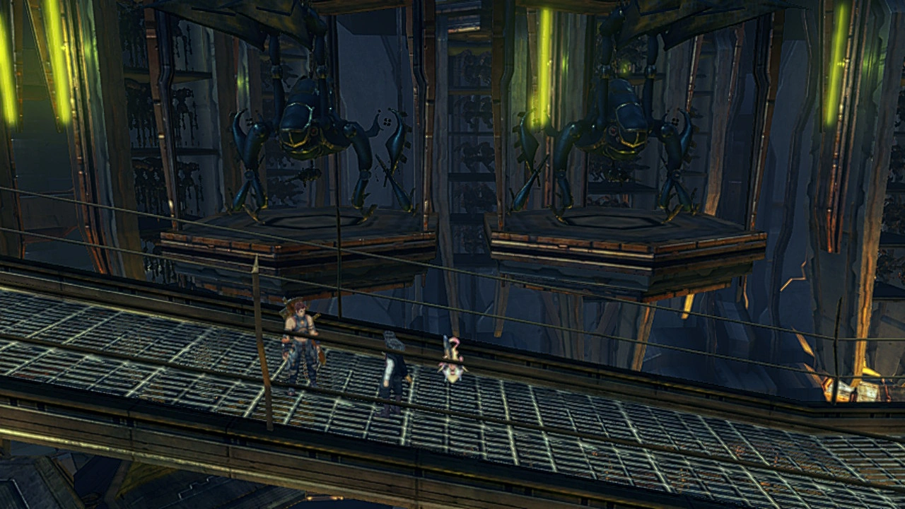 The Mechon Factory is a location in 异度神剑. It is located on the third floor of Central Factory. The quest Find a Path to the Top requires infiltrating this factory, which triggers Daring 袭击, requiring the party to defeat the M96 Crisis Unit, along with two Crisis Response Units.