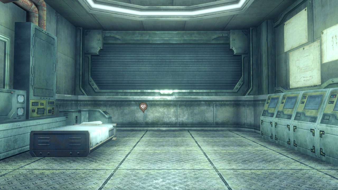 The Mining Base (Japanese: 採掘基地, Saikutsu Kichi) is a landmark in 异度神剑. It is located on the ground floor of the 以太 Mine, branching off from the Storage Depot. It is a small room filled with 魂控 and 机, a bed, and what looks like a shuttered viewing window.