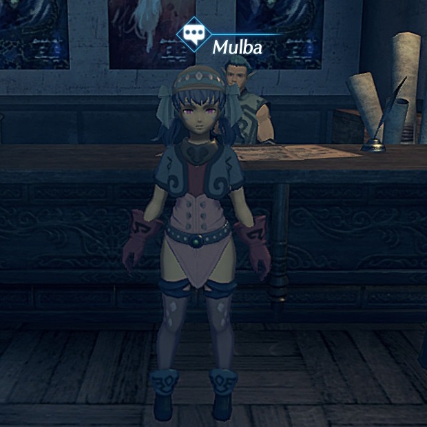 Mulba is an NPC in 异度神剑 2. Mulba is an Urayan who can be found at the Mymoma Playhouse ticket counter in the Kingdom of Uraya.