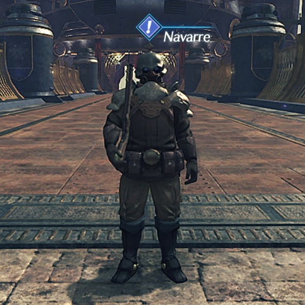 Navarre is an NPC in 异度神剑 2. He can be found at Nharil Central Plaza in Alba Cavanich in the Empire of Mor Ardain. He makes an appearance in the quest Newt Recruits.