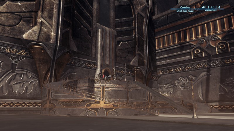欧拉锡姆城门前 is a landmark in 异度神剑X. It is located in the 欧拉锡姆城址 in 黑钢大陆. There are two doors here which provide access to the castle 内部, one human-sized and one Doll-sized. The former, atop a set of stairs, connects to a series of passages which lead to the building's larger rooms. The larger door connects directly to 欧拉锡姆城堡塔, but cannot be opened until the 「强力」沸腾战甲 is defeated during 第11章.