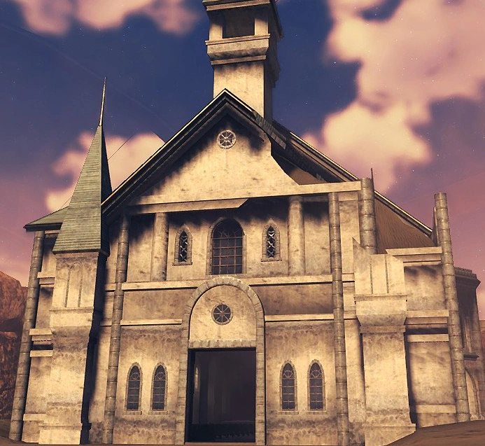 The Old Temple is a landmark in 异度神剑 2. It is located in the Upper Level area of the First Low Orbit Station, in Elysium. A staircase inside leads down to the 設計士's Room. There is a 秘宝 Trove on the right-hand side from the door, and one on the outside of the building (left-hand side).