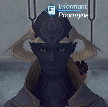 Phormyne is an NPC in 异度神剑 2. He is an Indoline who can be found by the Seoris Plaza 西门 in the Indoline Praetorium. He runs the shop 情报人员.