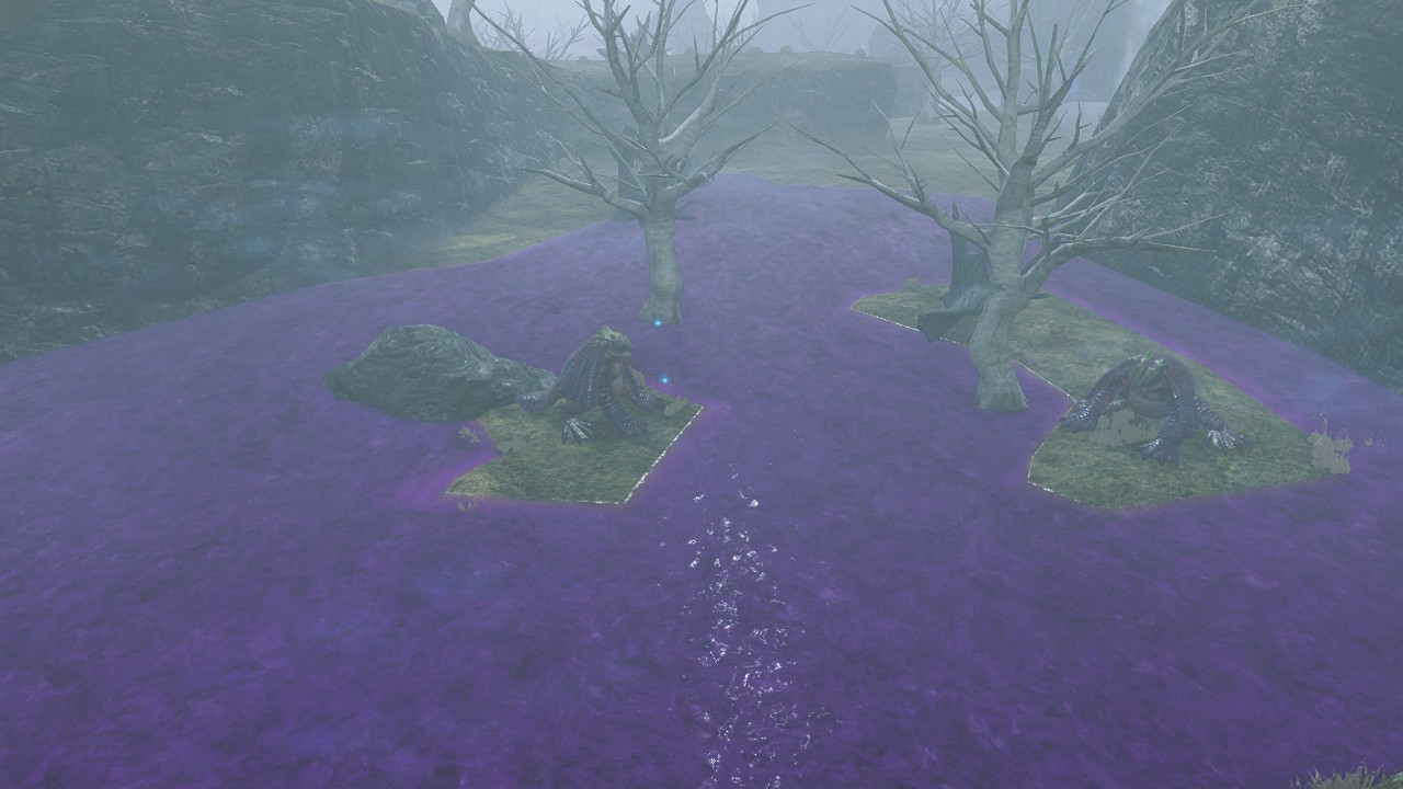 The Poison Swamp is a location in 异度神剑. It is located in Satorl Marsh. It is a swamp, and just like Dark Swamp the party takes damage while they are in the purple liquid. It is located just south of Zaldania Waterfall, and northeast from Crown Tree. This is one of the two swamps where Poison Brogs are found on the islands.