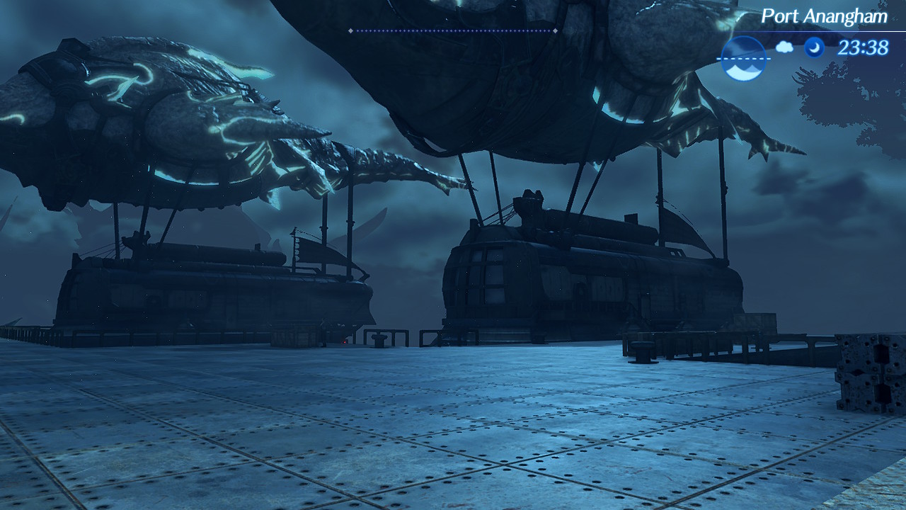 Port Anangham is a Location in 异度神剑 2. It is located on the Lower Level of the Empire of Mor Ardain. It is the 主色调 port facility for the Titan's left 肩, and is not far from the Empire's capital Alba Cavanich. It is the first location on the Titan the party visits upon their arrival.