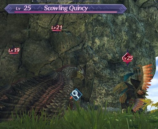 Scowling Quincey is a Unique Monster in Torna ~ The Golden Country. It is a member of the Tirkin family and can be found at level 25 in the Aletta Region of the Kingdom of Torna, on the lowest level of the Tirkin Cliff Colony. It is accompanied by two Arrah Rhoguls.