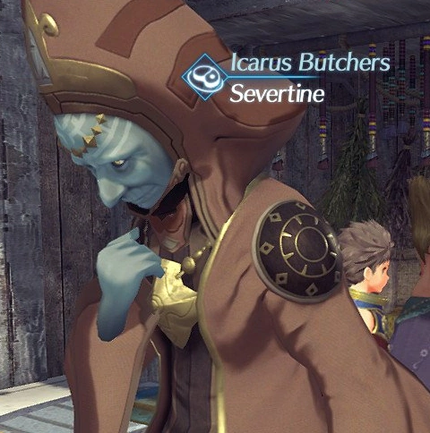 Severtine is an NPC in 异度神剑 2. He is an Indoline who can be found in the Indoline Praetorium. He runs the shop Icarus Butchers.