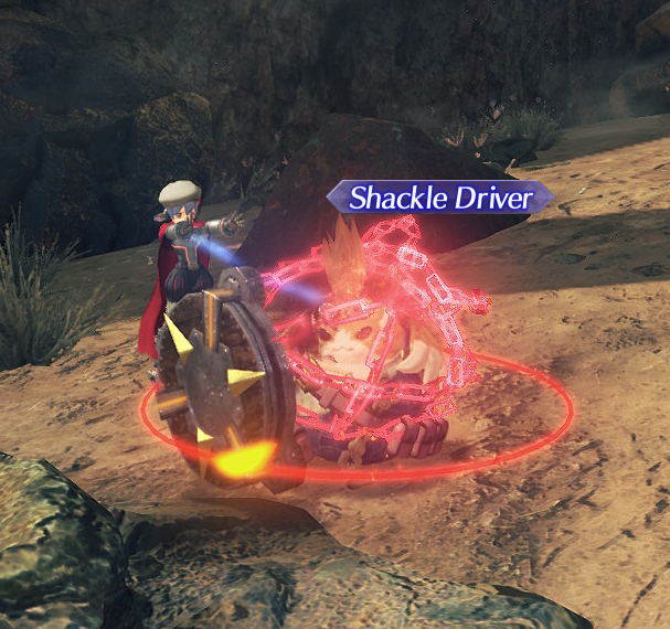 Shackle Driver is a status effect in 异度神剑 2 and Torna ~ The Golden Country. It is a party debuff that temporarily seals the abilities of a Driver. When the debuff activates, the Driver becomes bound by fluorescent red chains. It lasts for 6 seconds.