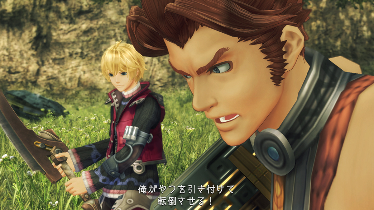 | Shulk, Riki, Fiora | Riki - Riki try really hard. Fiora - I was watching the whole time. Riki - Wha..? No way. You watching Riki? Shulk - I saw him slacking off a bit. Riki - *Guilty laugh* You wrong. Riki try really hard. Shulk & Fiora - *Laughs* |