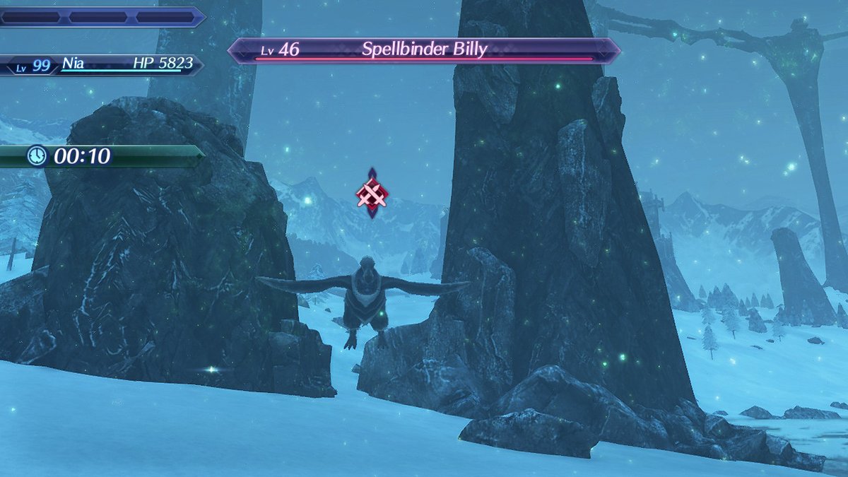 Spellbinder Billy is a Unique Monster in 异度神剑 2. It is a member of the Peng family, and can be found at level 46 along the Genbu Drifts in the Kingdom of Tantal. It only appears during snowfall and can summon Ghastly Piranhax by using its art "Salmon Gift".