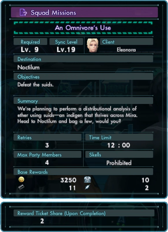 • The Base Rewards and Reward Ticket Share that will be awarded upon completion of the mission.