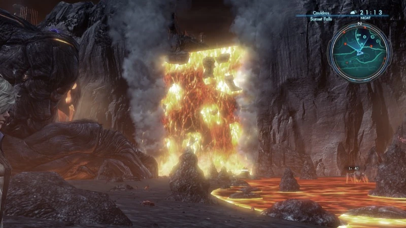 日落瀑布 is a landmark in 异度神剑X. It is the area around a large magma waterfall located in 黑钢大陆, directly adjacent to the 三叉歧路BC. 敌人 Minor 敌人 「钆」石蛛 「大地」麒麟马 「猎人」米尔萨德 「小马驹」麒麟马 「铽」石蛛 「后」真奎魔战甲 「火山」噬矿兽 珍稀种 「潜热」伊兹格南尼 「开悟」伊里西奥斯 Categories: 黑钢大陆 Landmarks Community content is available under CC-BY-SA unless otherwise noted.