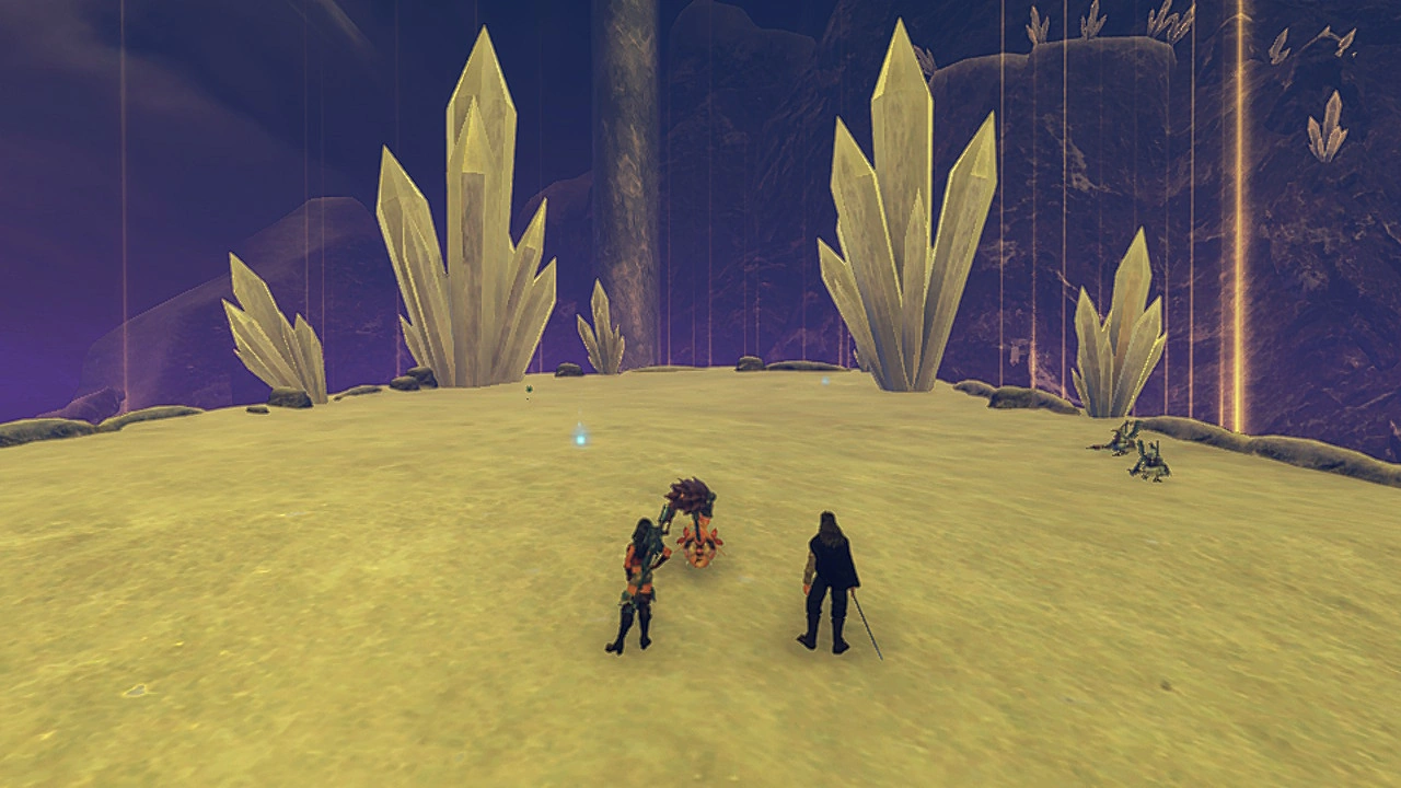 Url Crevasse (Japanese: ウルの裂け目, Uru no sakeme) is a location in 异度神剑. It is a somewhat hidden location on the upper level of Valak Mountain. It is south of the Hollow Bone. The path to the crevasse is on the same altitude (i.e., do not descend into the Chilkin Lair) as the landmark. The path is somewhat blocked by a large crystal. The North Star Gusion lives here at 夜间, during snow.