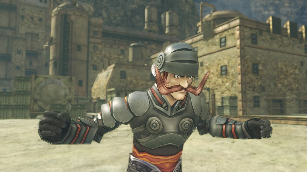 Much later, he appears during the combined Second Battle of Sword Valley, fully healed, and commanding a squadron of soldiers from Colony 9. Otharon disagrees with his reckless offensive methods. He almost falls off Sword Valley when Egil forces the Mechonis to awaken, but is rescued by a soldier. He also appears for a final time in the game's epilogue, punishing a soldier who has crashed the 破坏移动炮台 into a residential building.