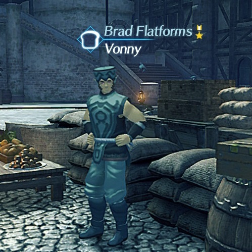 Vonny is an NPC in 异度神剑 2. Vonny is an Urayan who can be found in the Kingdom of Uraya's Fonsa Myma. Vonny runs a shop called Brad Flatforms specialized in Staple Foods.