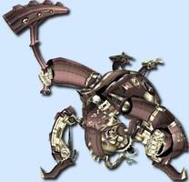 Xord is similar to Metal Face in that they share a bipedal appearance. However, Xord's armour and limbs are mostly black and silver in color. His face is a similar shape to Metal Face's, but has a working black lower jaw akin to a beard. The main thing that sets him apart from 其它 Mechon is that his appearance is very bulky and spherical; giving him an ogre-like or troll-like appearance. During battle, Xord wields a large hammer and is able to cover parts of his body with electricity.