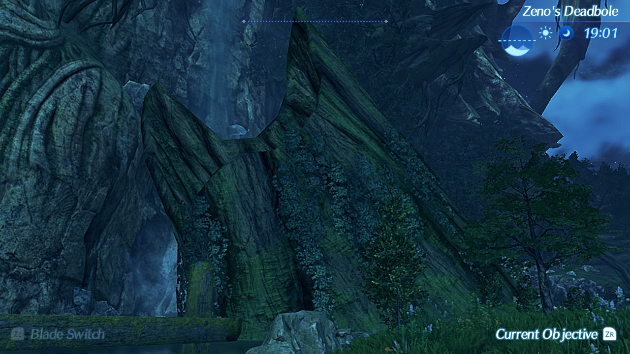Zeno's Deadbole is a landmark in 异度神剑 2. It is located at Coolley Lake on the right side of the upper level of Gormott Province. It is a giant hollow tree trunk, with a spring on the inside leading to the 晴天 Sky Beak.